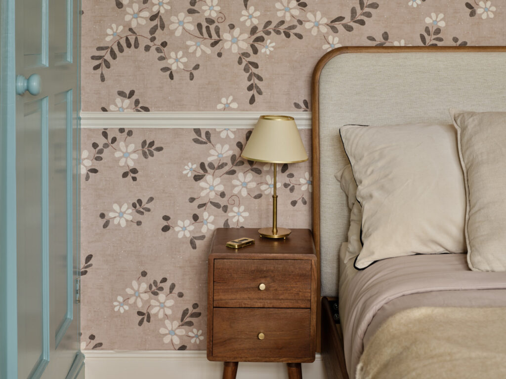 Proportion is harmony to the eyes and by wrapping this stunning lewis and wood wallpaper around the entire space we created a serene and joyful space that could adapt and flex with the seasons.