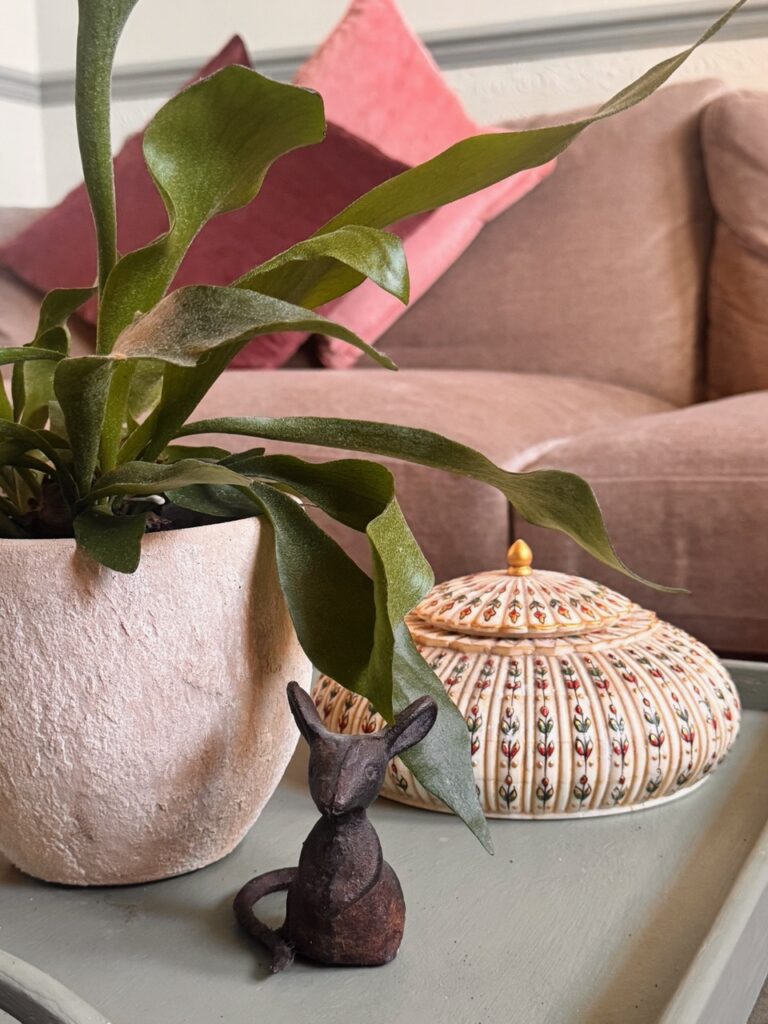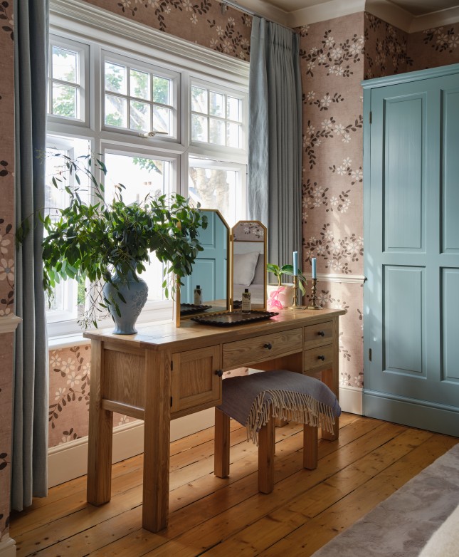 Blessed with great proportions and a stunning bay window we unified the space with colour, texture and contrasting organic furnishings including linen, wood, brass and velvet materials.